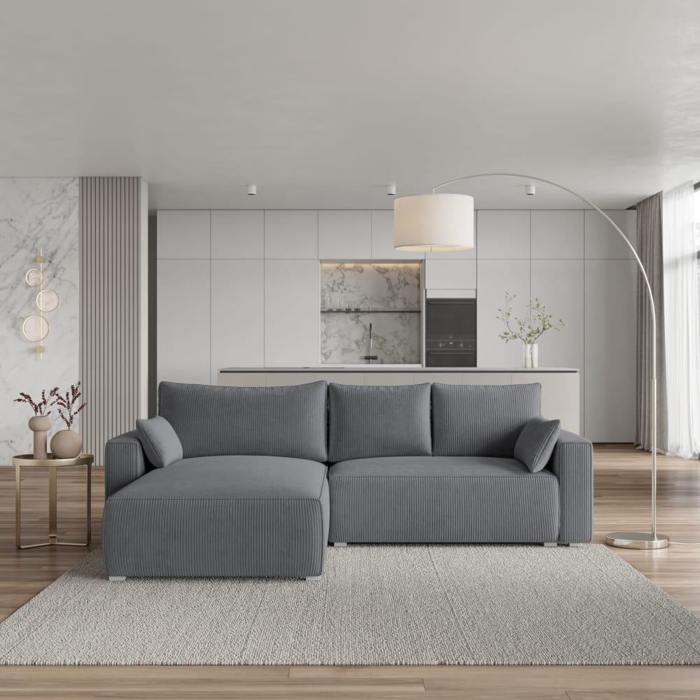 Ecksofa mit Schlaffunktion aus Kordstoff, Grau von Masseno