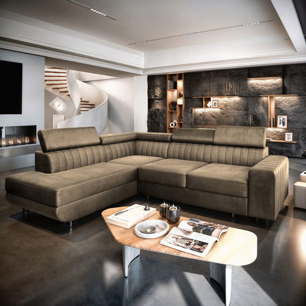 ✨ Ecksofa NOLA L-S – Ihr Traumsofa ✨ ➡Unser Ecksofa NOLA L-S ist nicht nur dank seiner Flexibilität, sondern auch durch seine exzellente Verarbeitung ein Möbelstück, das viele Jahre halten wird. Die Konstruktion aus Massivholz und starker Möbelplatte sorgt für einen stabilen Möbelboden und außergewöhnliche Langlebigkeit. ➡Das Ecksofa hat in fünf Ebenen verstellbare Kopfstützen, die es Ihnen ermöglichen, die perfekte Position zum Entspannen oder für einen Film zu finden. ➡Der angenehm zu berührende Stoff MONOLITH 09 sorgt für einen modischen und eleganten Look und verleiht dem Raum ein zeitloses Ambiente. ➡ Wellenunterfederung ➡ Ecksofa NOLA L-S wird mit einer 24-monatigen Garantie geliefert, weil wir von der Qualität unserer Möbel überzeugt sind. Wir möchten, dass du lange Freude daran hast, ohne dir Sorgen machen zu müssen. ➡ Die Schlaffunktion mit einer Fläche von 198×127 cm ermöglicht ein gemütliches Nickerchen im Wohnzimmer oder gelegentliches Schlafen. ➡Die Farbe kann je nach Monitoreinstellung variieren. ⚙ PRODUKTSPEZIFIKATION: ✅Gesamtbreite: 253 cm ✅Gesamttiefe: 190 cm ✅Gesamthöhe: 88 cm ✅Schlaffläche: 198×127 cm ✅Breite der Ottomane: 93 cm ✅Sitzhöhe: 40 cm ✅Sitztiefe: 59 cm ✅Höhe der Füße: 12 cm ✅Left corner