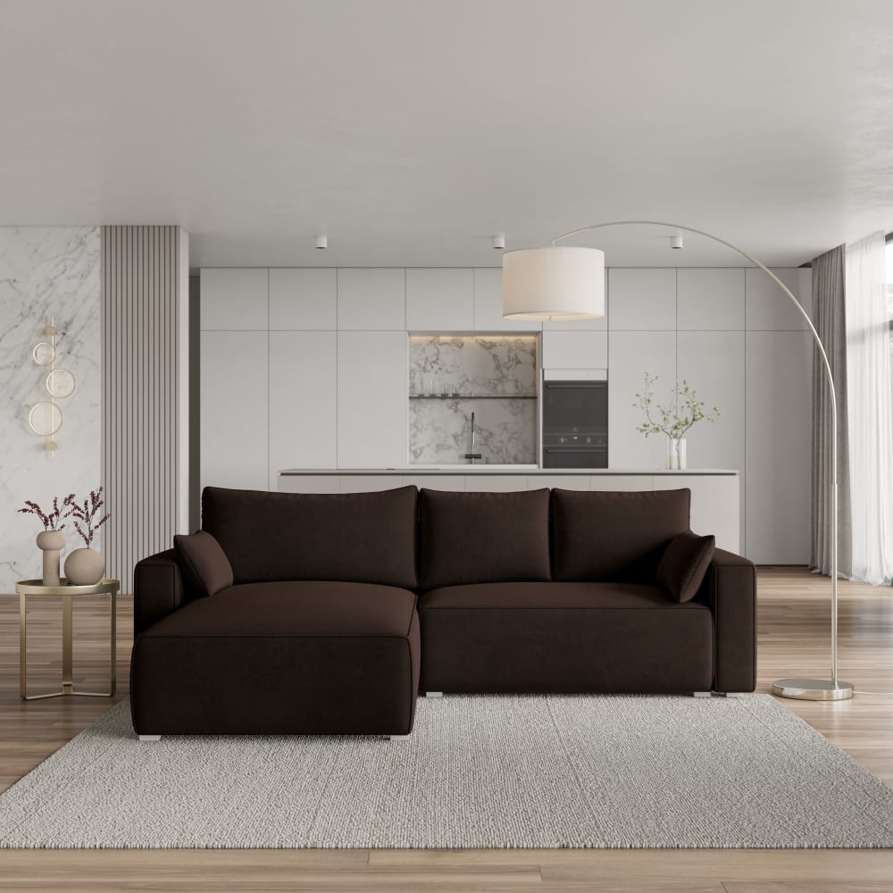 Ecksofa mit Schlaffunktion aus Velours-Stoff, Braun von Masseno