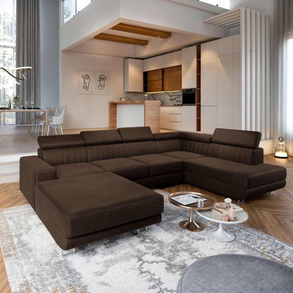 Ecksofa mit Schlaffunktion aus Velours-Stoff, Braun von Masseno