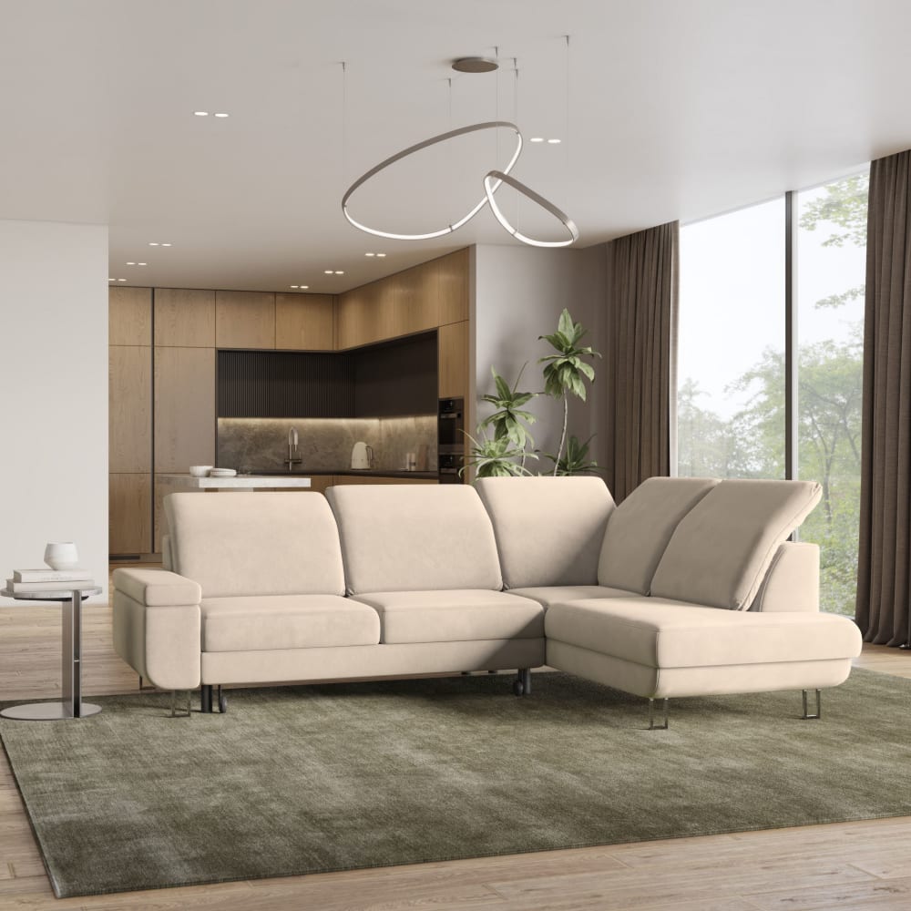 Ecksofa mit Schlaffunktion aus Velours-Stoff, Creme von Masseno