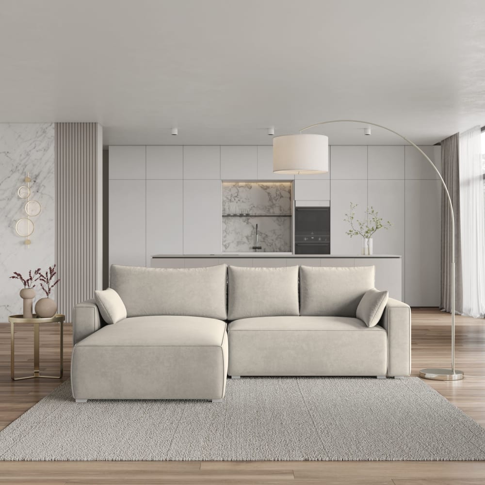 Ecksofa mit Schlaffunktion aus Velours-Stoff, Creme von Masseno