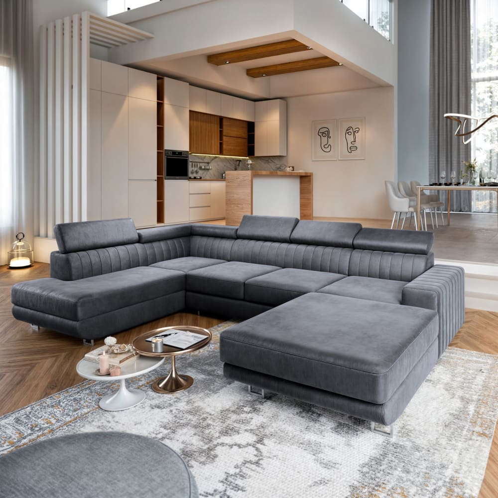 Ecksofa mit Schlaffunktion aus Velours-Stoff, Grau von Masseno