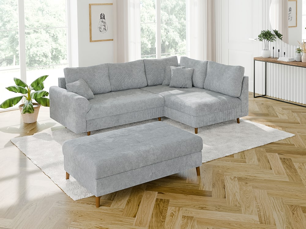 Ecksofa mit Schlaffunktion und Hocker aus Chenille-Stoff, Hellgrau von S-Style Möbel