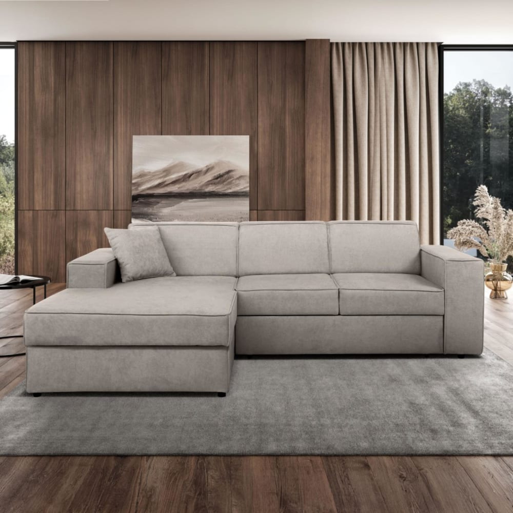Ecksofa mit Schlaffunktion, Velours-Stoff, cappuccino, links von Beauty Sofa GmbH