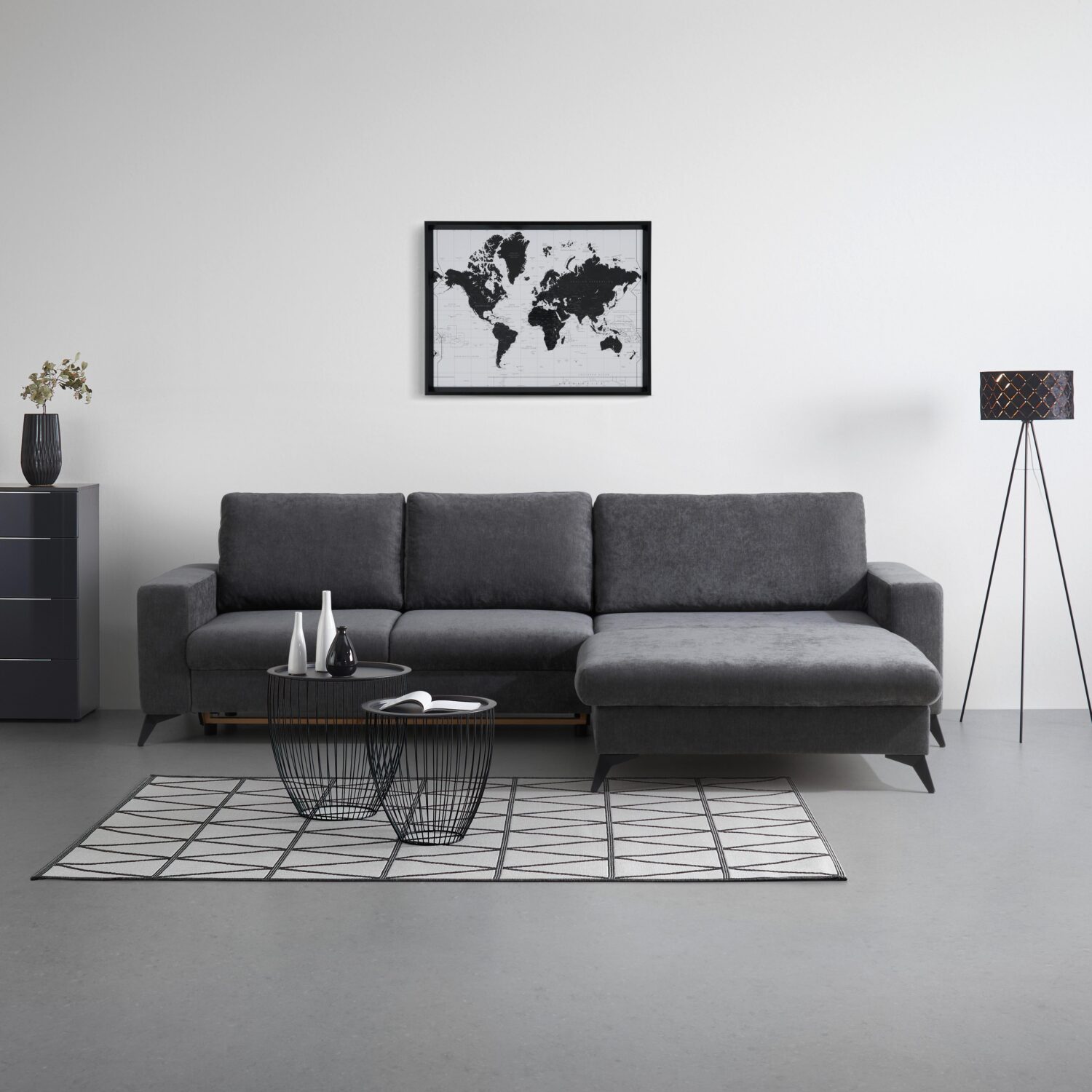 Lust auf ein Sofa, das nicht nur gut aussieht, sondern auch richtig was kann? Dann ist das Ecksofa Sunny in Grau wie für Sie gemacht! Mit seinen großzügigen Maßen von 290 x 87 x 178 cm (B x H x T) bietet es entspannten Platz für bis zu 4 Personen – ob zum Sitzen, Loungen oder einfach die Füße hochlegen. Dank Wellenunterfederung und angenehm weicher Polsterung aus Polyester sitzen Sie hier nicht nur bequem, sondern bleiben auch gerne mal länger liegen. Die stylische L-Form lässt sich seitenverkehrt montieren, also ganz flexibel an Ihren Raum anpassen – so wie Sie’s brauchen! Noch besser: Sunny ist nicht nur Sofa, sondern auch spontaner Schlafplatz! Mit der cleveren Schlaffunktion verwandelt es sich im Handumdrehen in ein gemütliches Bett mit einer Liegefläche von ca. 135 x 250 cm – ideal für Übernachtungsgäste oder Seriennächte deluxe. Ein integrierter Bettkasten sorgt für praktischen Stauraum und hält Kissen und Decken immer griffbereit. Die Sitzhöhe von ca. 44 cm und die angenehme Sitztiefe mit Kissen von ca. 58 cm sorgen für optimalen