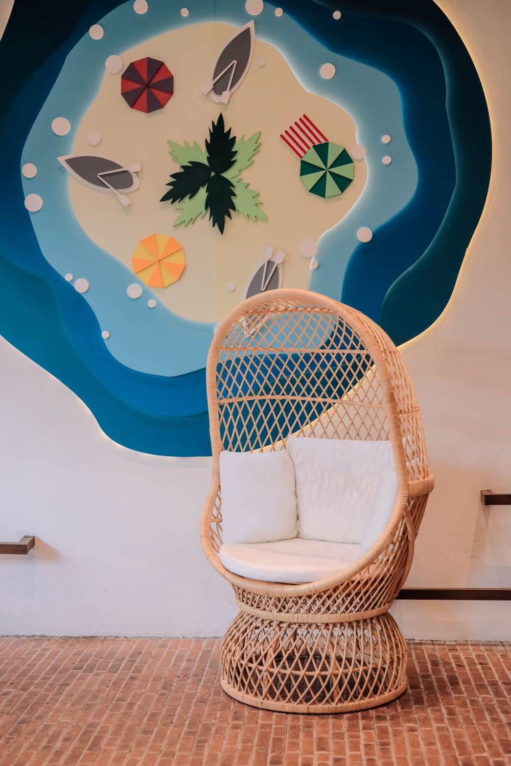 Eiersessel aus Rattan und Stoff Beige von Nordlys