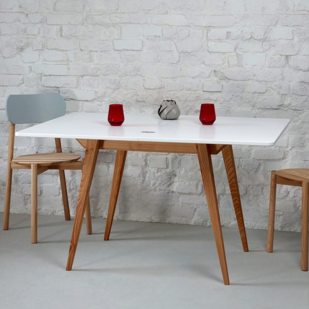 Erweiterbarer Tisch aus Holz, 90x65x75, Perlweiß, Eiche von Ragaba