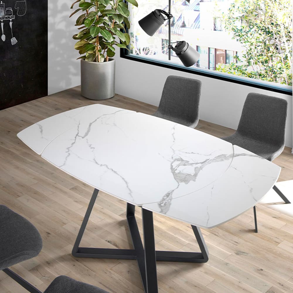 Ángel Cerdá ist eine Unternehmensgruppe mit Familientradition, die auf eine über 125-jährige Geschichte in vier Generationen in der Möbelbranche zurückblicken kann. Unsere Hauptaktivitäten sind die Herstellung, der Vertrieb und die Vermarktung aller Arten von Wohnmöbeln, Dekorationsartikeln, Holz und anderen Rohstoffen, die traditionell in der Industrie verwendet werden.Ausziehbarer Esstisch aus weißem Marmor Modell 1096 Angel Cerdá S.L. Ovaler Esstisch, der durch einen automatischen Schwenkmechanismus ausgezogen werden kann. Die 6 mm dicke Platte aus Porzellanmarmor und die Struktur aus schwarz gefärbtem Epoxidstahl machen diesen Tisch zu einem exklusiven und einzigartigen Stück für Ihr Esszimmer. Dank seiner Abmessungen und seiner Form sowie seiner um 30 cm ausziehbaren Beine ist er perfekt geeignet, um Ihre Gäste praktisch und mit maximalem Komfort unterzubringen – STYLE: Dieser originelle Designer-Esstisch bringt einen modernen und eleganten Touch mit, der den neuesten Trends in der Dekoration entspricht. – VIELSEITIG: Das vielseitige und funktionale Design passt in jedes Wohn- oder Esszimmer und macht es zum Star Ihres Raumes. – QUALITÄT: Alle unsere Esstische werden aus den hochwertigsten Materialien hergestellt, die eine lange Lebensdauer und Funktionalität der Möbel garantieren. – DEKORATION UND KOMFORT: Runder Esstisch mit modernem Design von Angel Cerdá S.L. Ein idealer Tisch, der Vornehmheit und Funktionalität vereint. – DIMMENSIONEN: Aufgrund seiner Größe und VIELSEITIG dank seiner ausziehbaren Mechanismus umwandelbar in ovalen Lauf, wird diese Porzellan-Marmor-Tisch die perfekte Wahl für Ihr modernes Design Esszimmer sein.