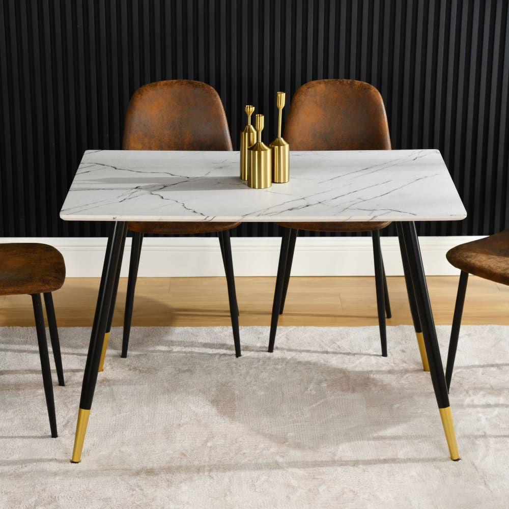 Eleganter Marmoreffekt: Der Marmoreffekt auf der Oberfläche der Tischplatte verleiht einen Hauch klassischer Eleganz, die nie aus der Mode kommt. Egal, ob Sie eine anspruchsvolle Dinnerparty veranstalten oder ein ungezwungenes Essen mit der Familie genießen, dieser Tisch gibt den perfekten Ton an. Die luxuriöse Optik von Stein ergänzt jede Einrichtung und macht Ihr Esszimmer zu einem Mittelpunkt der Bewunderung und Unterhaltung.