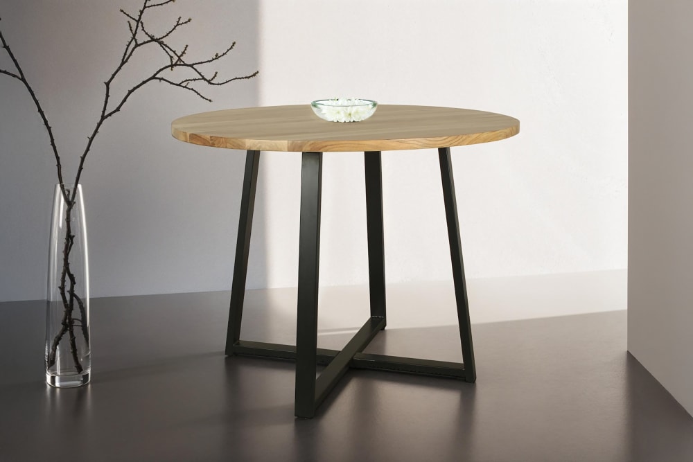 Esstisch, rund, Massivholz, Gestell Metall, D 100, H 77 cm, natur von ByLiving