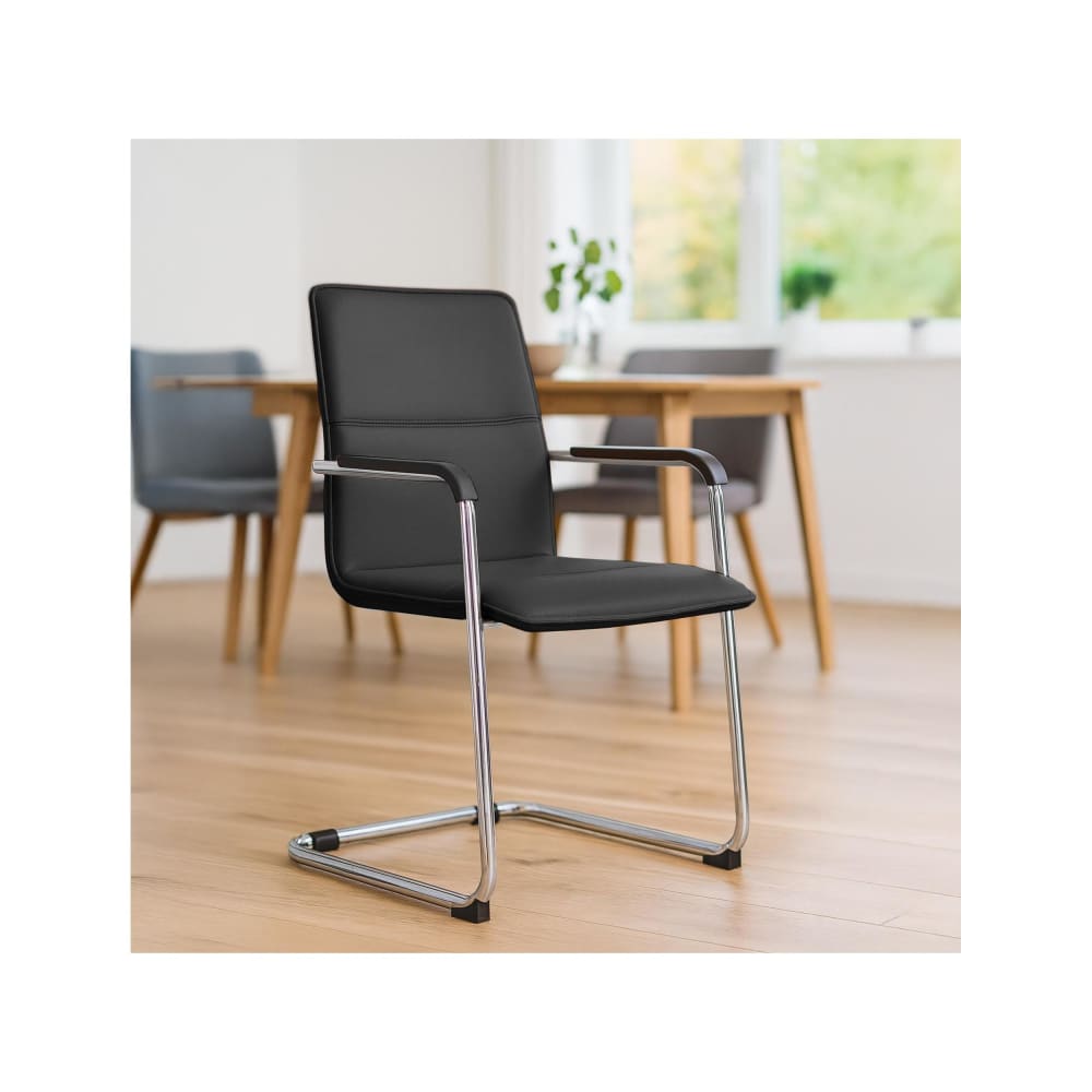 Freischwinger mit Metallgestell und Sitz aus Kunstleder schwarz von CLP