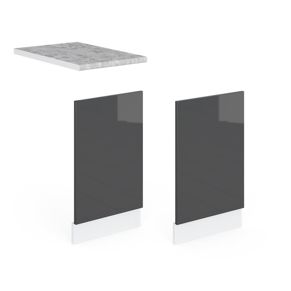 Die Frontblende der R-Line Serie mit Arbeitsplatte ist ein absolutes Must-Have für jede Einbau-Küche und macht aus jedem Geschirrspüler ein stylisches Highlight. Die hochwertige Verarbeitung und die vielen verschiedenen Farben machen dieses Produkt zu einem echten Hingucker, der sich perfekt in jede Küche integrieren lässt. Ob klassisch oder modern – die R-Line Serie passt zu jedem Einrichtungsstil und verleiht Ihrer Küche einen unvergleichlichen Charme.—Technische Details:Farbe Korpus:WeißFarbe Korpus:WeißFarbe Front:Anthrazit HochglanzArbeitsplatte:Marble-WeißAbmessungen:45 x 57.2 x 1.6 cm (BxHxT)Material:Spanplatte, 16 mmZusätzliches Material:Spanplatte, 28 mmOberfläche:MelaminharzbeschichtungArtikelgewicht:5.72 kg.Artikelgewicht inkl. Verpackung:7.7 kg.—LIEFERUMFANG: Geschirrspülblende mit Arbeitsplatte, Montagematerial, Montageanleitung (Sofern nicht anders angegeben, gehören Elektrogeräte und Dekorationen nicht zum Lieferumfang).
