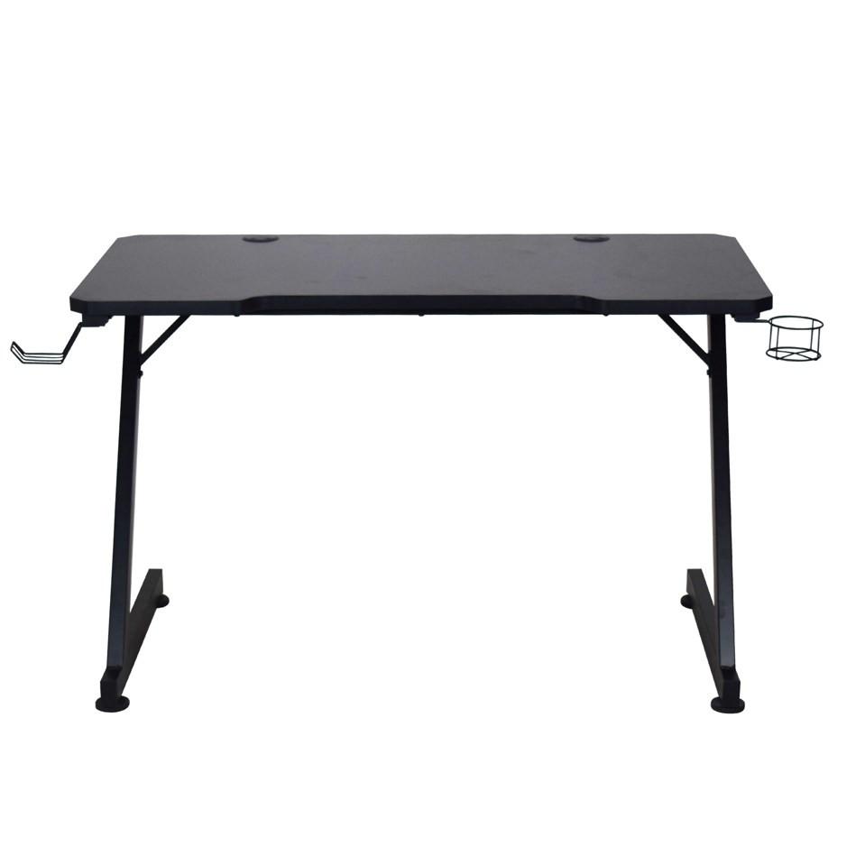 Erleben Sie ultimativen Komfort und Stil mit unserem schwarzen Gamingtisch. Mit einer Maße von ca. 120 x 75 x 60 cm ( B x H x T ) bietet dieser Tisch reichlich Platz für all Ihre Gaming-Setups. Der Gamingtisch besteht aus einer Kombination von Metall und Holzwerkstoff. Die Tischplatte aus Flachpressplatte ist mit einer robusten Melaminoberfläche versehen, die Langlebigkeit und einfache Pflege garantiert. Die Tischplatte hat eine Materialstärke von 25 mm und bietet eine maximale Belastbarkeit von ca. 50 kg. Das durchdachte Design der Tischplatte verfügt über eine gerade Kante und eine rechteckige Form, was sie besonders benutzerfreundlich macht. Zudem ist ein praktischer Getränkehalter integriert, sodass Ihre Erfrischungen stets griffbereit sind. Die Beine des Tisches sind aus schwarzem Eisen gefertigt und haben eine eckige Form. Mit einer Breite von ca. 1 cm, einer Höhe von ca. 50 cm und einer Tiefe von ca. 30 cm sorgen sie für optimale Stabilität und Standfestigkeit. Dieser Gamingtisch ist die perfekte Ergänzung für jedes Spielzimmer und bietet sowohl Funktionalität als auch ein elegantes Design. Genießen Sie Ihre Gaming-Sessions in vollen Zügen mit diesem hochwertigen und stilvollen Tisch, der all Ihre Bedürfnisse erfüllt.
