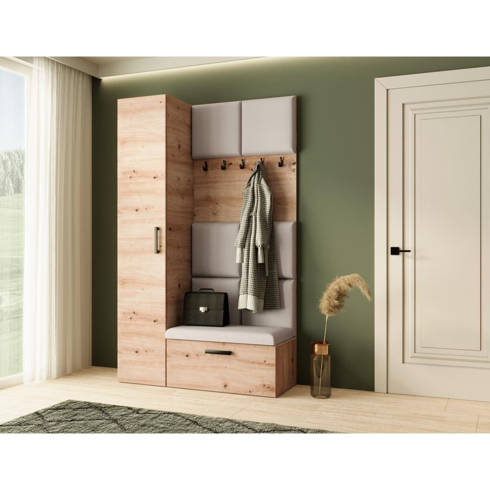 Garderobe mit gepolsterten Paneelen, eiche Artisan+beige, 121×203 cm von Beauty Sofa GmbH