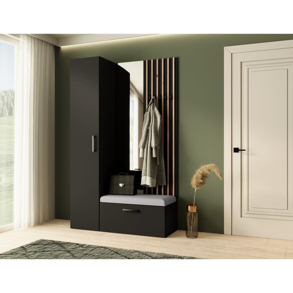 Garderobe mit Lamellen und Hochschrank, schwarz+grau, 121×203 cm von Beauty Sofa GmbH