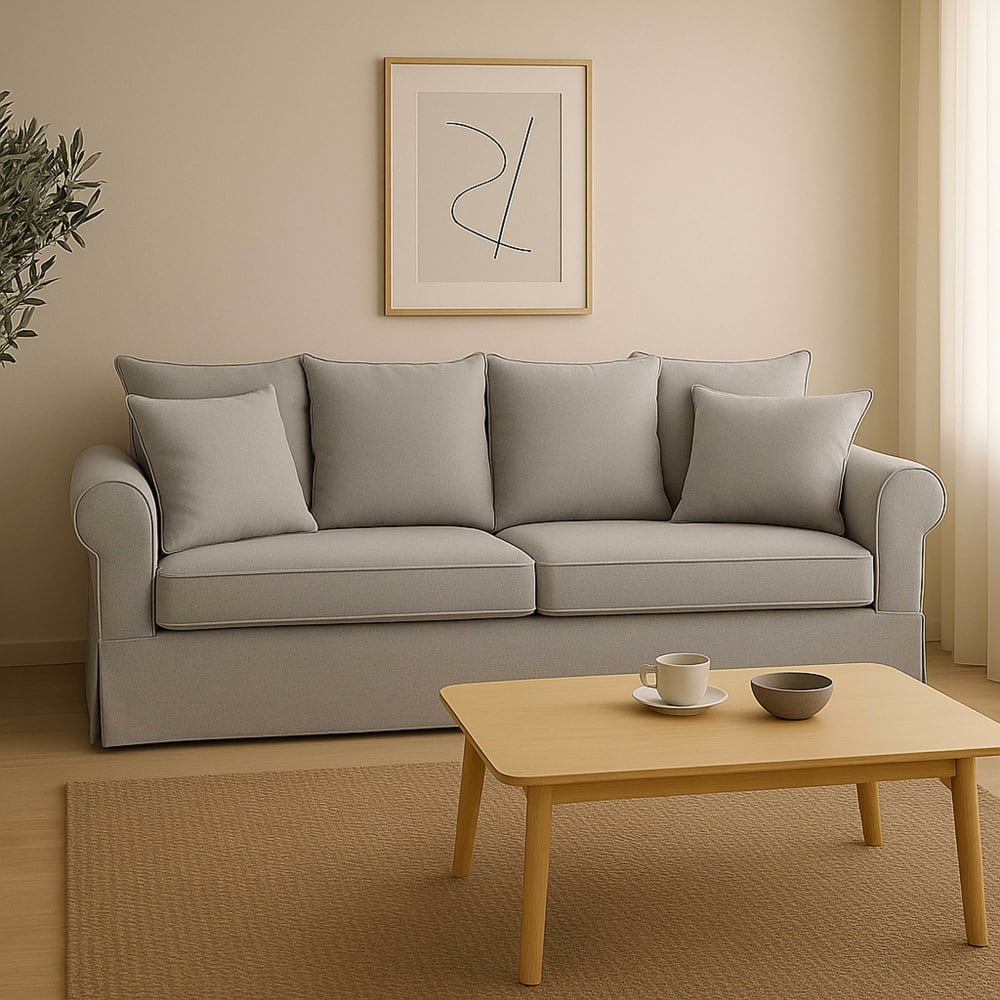 Gerades 3-Sitzer-Sofa aus hellgrauem Polyester von Oviala