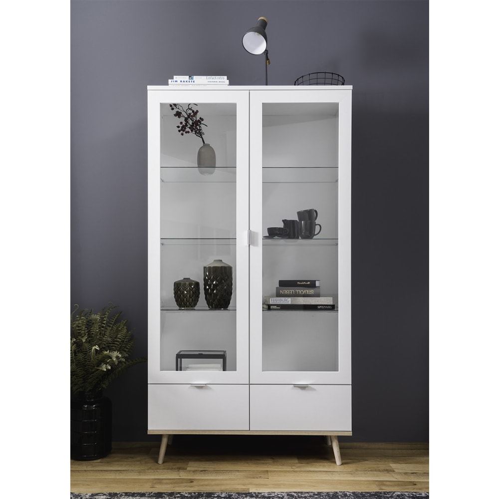 Geschirrschrank, 2 Glastüren, 2 Schubladen, H185 cm – Weiß von Calicosy