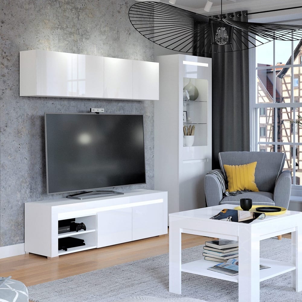 2-türige Vitrine inkl. LED Kasla WeißKollektion :: Kasla Materialien : Laminierte Platten Farben: Frontseite weiß glänzendKorpus weiß matt Eigenschaften: 2 Türen, davon 1 mit Glas3 verstellbare Einlegeböden, davon 2 aus GlasLED-Streifen mit kaltweißem Licht InklusiveLED zum Einstecken in die Steckdose mit einem Knopf zum Ein-/Ausschalten Produktgewicht und Abmessungen : 48 kg60 x 39 x 195 cm Verpackung : Produkt wird zur Montage geliefert, inkl. Anleitung Garantie: 24 Monate Gesamtanzahl der Kartons : 3