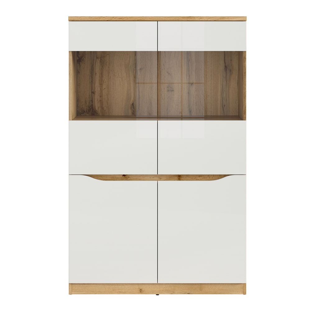 2-türige Vitrine June Weiß und HolzEuropäische Herstellung Kollektion :: June Farbe : Weiß und Holz Materialien : MDF-Platten und laminierte Spanplatten (kratzfest) Eigenschaften: 4 Türen, davon 2 verglast4 Aufbewahrungsnischen Gewicht und Maße: 45 kg90 x 40 x 142 cm Produkt geliefert, zum Zusammenbauen Produkt mit 12-monatiger Garantie. Gesamtanzahl der Kartons : 3