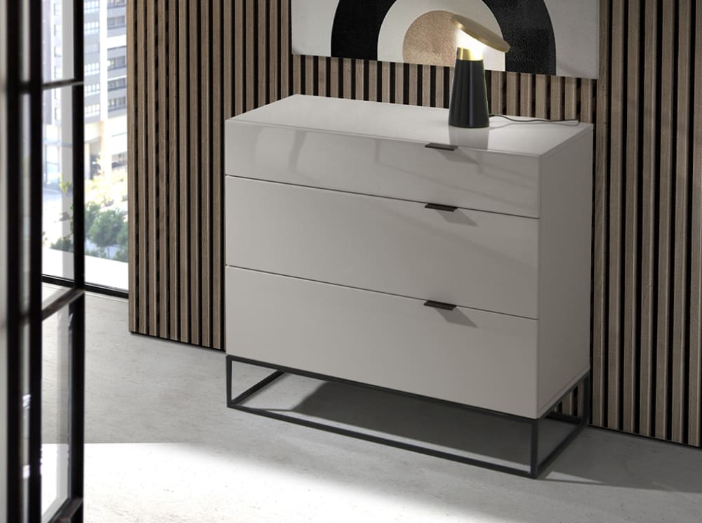 Ángel Cerdá ist eine Unternehmensgruppe mit Familientradition, die auf eine über 125-jährige Geschichte in vier Generationen in der Möbelbranche zurückblicken kann. Unsere Hauptaktivitäten sind die Herstellung, der Vertrieb und die Vermarktung aller Arten von Wohnmöbeln, Dekorationsartikeln, Holz und anderen Rohstoffen, die traditionell in der Industrie verwendet werden.Schwarze Stahlkommode Modell 7020 Angel Cerdá S.L. Kommode aus modernem Design aus DM, lackiert in RAL7035 Pearl Grey Gloss und einer originellen Struktur aus Beinen und Griffen aus schwarz lackiertem Epoxidstahl. Eine Kommode mit elegantem und raffiniertem Stil, die Ihrem Schlafzimmer den minimalistischen und stilvollen Touch verleiht, den Sie suchen, und dank des großen Stauraums mit drei Schubladen, einer Einzel- und zwei Doppelschubladen, mit weichem Schließsystem alles in Ordnung hält. -Schließen. Ein Hilfsmittel mit geraden Linien, praktisch und funktional sowie ein Design für Ihr Zimmer. STIL: Eine originelle Kommode, die Ihrem Schlafzimmer den modernen Touch verleiht, den Sie suchen. Die Kombination aus grauem Lack und schwarzem Stahl schafft eine warme und stilvolle Umgebung. VIELSEITIG: Vielseitig und funktional. Dank seines Designs passt es in jede Art von Schlafzimmer und wird zu einem wichtigen dekorativen Element des Raums. QUALITÄT: Alle unsere Kommoden werden aus Materialien höchster Qualität hergestellt, was eine Garantie für langlebige und funktionale Möbel darstellt. DEKORATION UND KOMFORT: Diese Kommode mit schwarz lackierten Griffen aus Epoxidstahl ist die perfekte Option, wenn Sie Eleganz und Einfachheit suchen und gleichzeitig ein größeres Raumgefühl erzielen möchten. FUNKTIONALITÄT: Der minimalistische und einfache Stil dieser Kommode sowie der große Stauraum mit einer einzelnen Schublade und zwei Doppelschubladen mit weich schließendem Verschluss sorgen für Geräumigkeit und ein Gefühl von Leichtigkeit im Raum sowie für mehr Funktionalität halte alles in Ordnung.