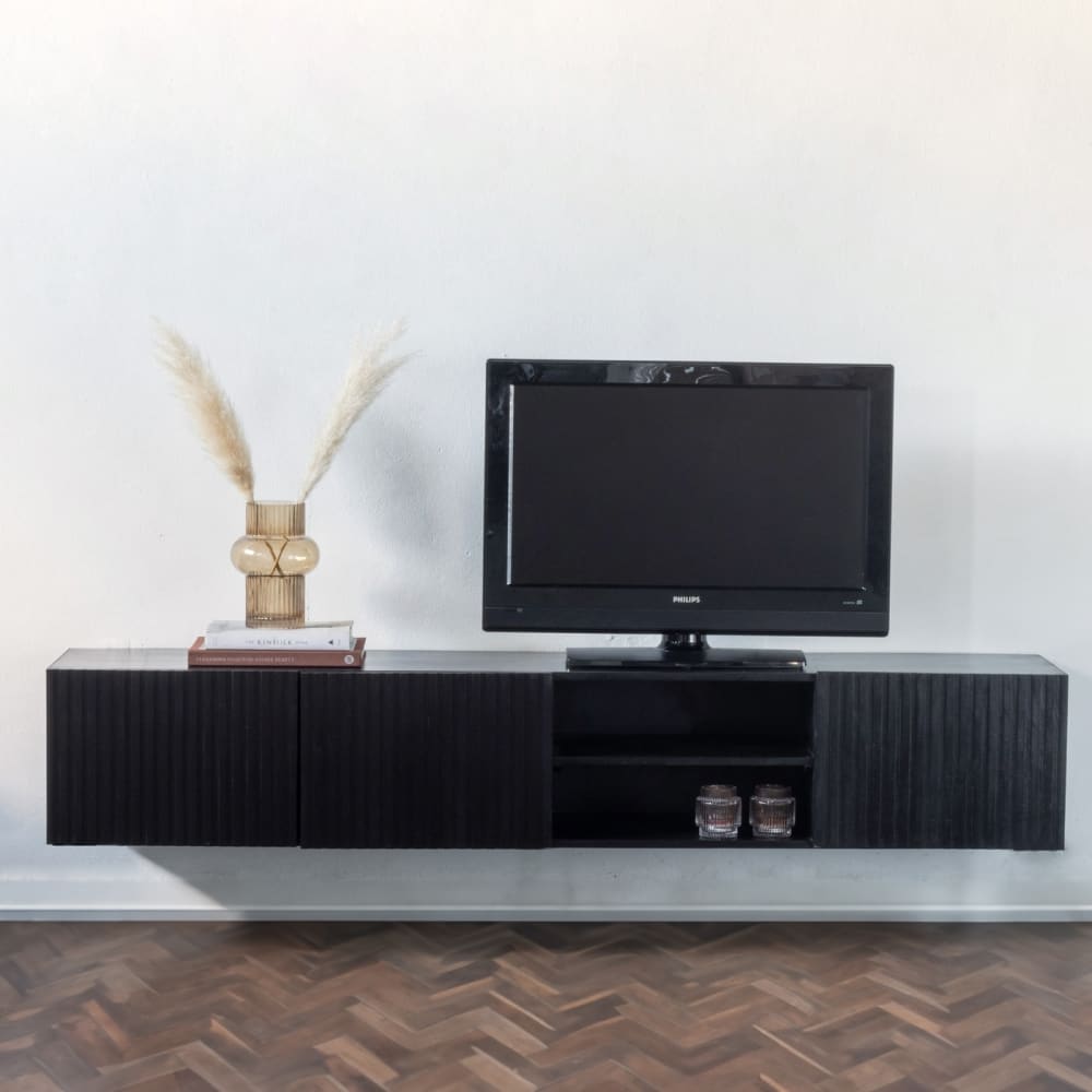 Hängendes TV-Möbel aus Mangoholz 200x40x35cm, schwarz von Giga Meubel