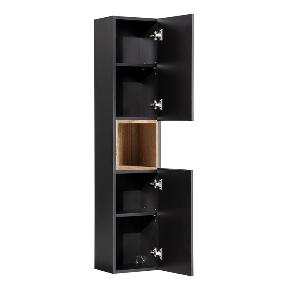 Hängesäule 2 Türen 1 Nische Riva Schwarz und HolzKollektion :: Riva Herstellung: Europäische Herstellung Materialien : Frontseite aus 16 mm MDF-PlattenKorpus aus 16 mm Melaminplatten70% FSC-zertifiziertes Holz aus nachhaltiger Forstwirtschaft Farbe : Schwarz und Holznische in Eichenoptik Die Farbe auf dem Foto kann je nach den Einstellungen Ihres Bildschirms (Kontrast, Helligkeit) variieren. Eigenschaften: Hängeschrank2 Türen (umkehrbare Öffnung links oder rechts)2 Regale1 zentrale NischeGeräuscharmes SchließsystemWandbefestigungen: Schrauben und Dübel nicht inbegriffenEs wird empfohlen, Ihre Befestigungen an Ihren Untergrund anzupassenDieses Möbelstück gibt es in 3 Farben: Schwarz, Weiß und Kaschmir. Gewicht : 21 kg Maße: 30 x 25 x 140 cm Die angegebenen Maße können um einige Millimeter abweichen. Montagehinweise : Dieses Möbelstück ist für eine Installation mit Wasseranschluss von der Wand aus konzipiertFür eine optimale Montage wird die Verwendung eines platzsparenden Siphons dringend empfohlen, je nach Kollektion : sogar zwingend vorgeschrieben, um das ordnungsgemäße Schließen der Schubladen zu gewährleisten und jegliche Behinderung durch die Sanitäranlagen zu vermeiden. Pflegetipps : Für ausreichende Belüftung und eine funktionierende Lüftungsanlage sorgenKanten, die Wasser ausgesetzt sind, mit Silikon versiegelnDas Innere von Möbeln nicht der Feuchtigkeit (Wasser, Wasserdampf) aussetzen. Sicherheitshinweise: Für gute Belüftung im Badezimmer sorgenDas Möbelstück sicher an der Wand befestigenDie in den Anleitungen angegebenen empfohlenen Höchstlasten beachten Sicherheitsstandards: EN 14688 garantiert die Sicherheit und Nassleistung von Waschbecken Verpackung : Produkt wird zur Montage geliefert, inklusive Anleitung. Produktgarantie: 24 Monate Gesamtanzahl der Kartons : 2 Gewicht und Abmessungen der Kartons: 18 kg / 168,2 x 33 x 7,7 cm4 kg / 50,3 x 26,9 x 9 cm Gesetzlicher Vertreter: NAPKINS, 30/34 avenue Henri Matisse, 06200 Nizza, FRANKREICH