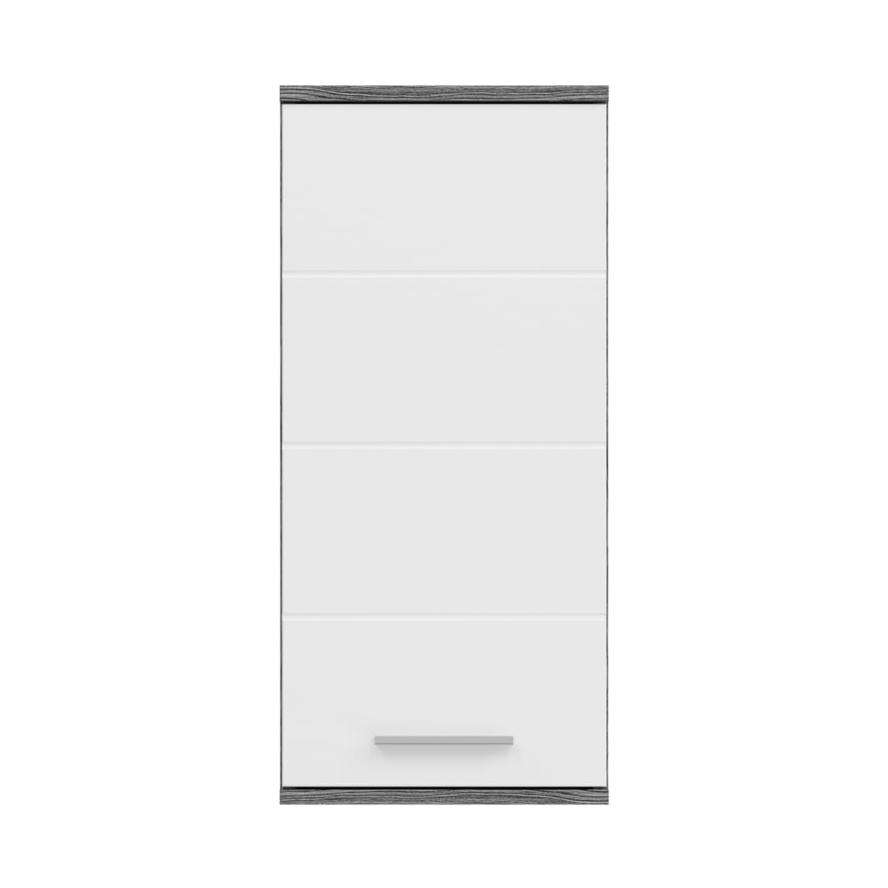 Ein hochwertiger Hängeschrank mit den Maßen 35x77x25 cm besticht durch seine Kombination aus eleganter Rauchsilber-Nachbildung und strahlendem Weiß-Hochglanz. Mit seinem platzsparenden Design und großzügigem Stauraum ist dieser Schrank die perfekte Ergänzung für Ihr Badezimmer oder Ihre Küche. Bringen Stil und Funktionalität in Ihr Zuhause.