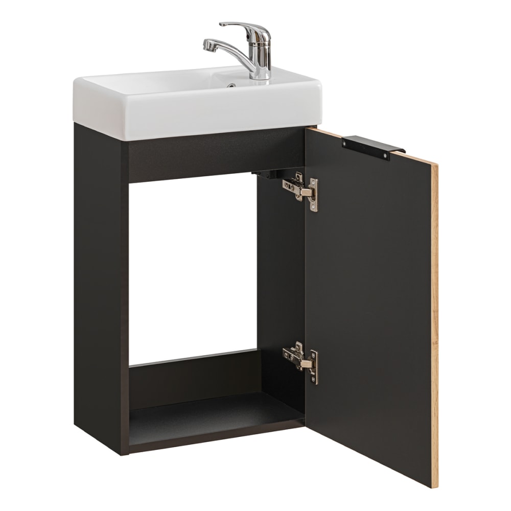 Handwaschbecken-Möbel mit 1 Tür, Eichenoptik und Schwarz, 40cm von Petits meubles