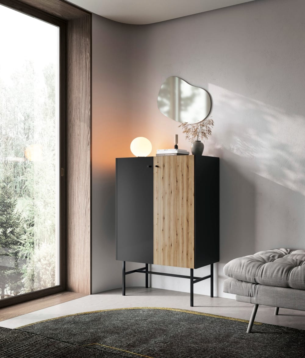 Highboard 2-türig, Schwarz / Holzoptik Eiche, 93 cm von Selsey