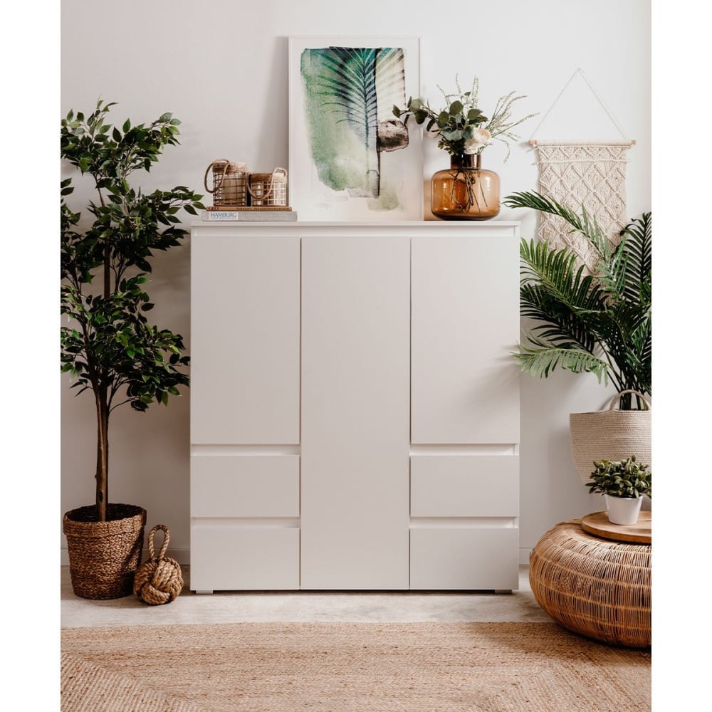 Hochschrank 3 Türen, 4 Schubladen und 5 Regale B116 cm – Weiß von Calicosy