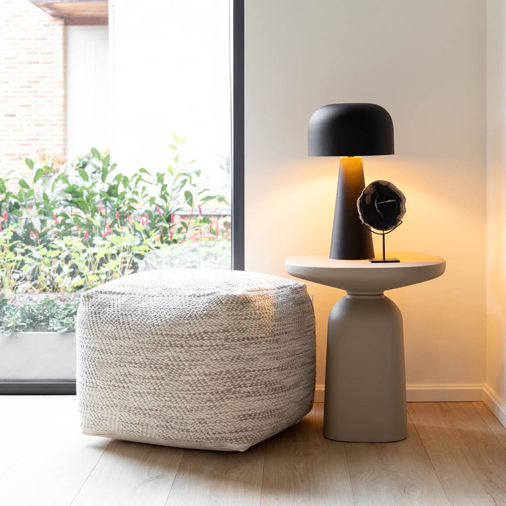 Hocker aus Wolle, Quadratisch, 50x45x50, Beige von Atmooz
