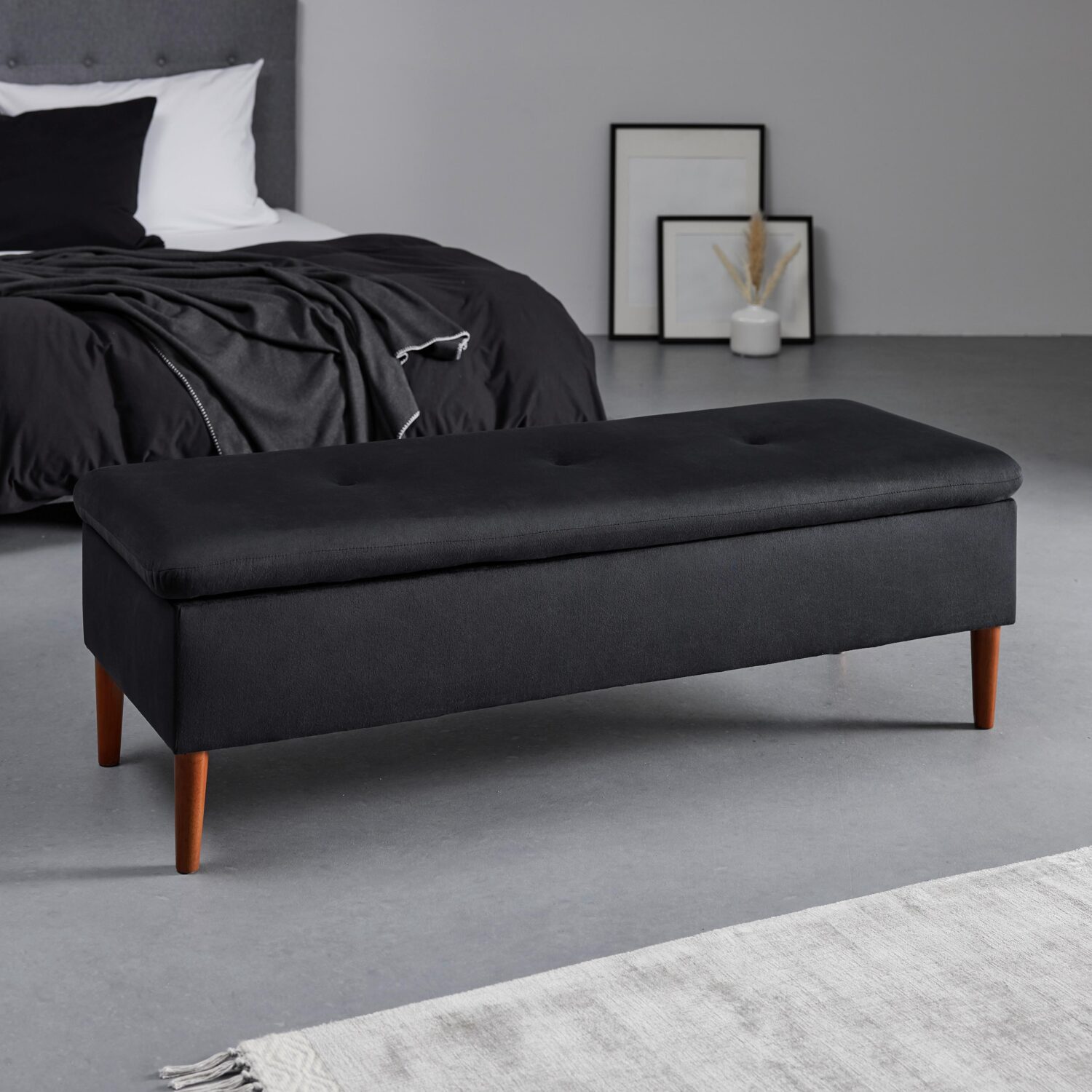 Hockerbank Jessy Schwarz Samt Gepolstert mit Stauraum von Bessagi Home