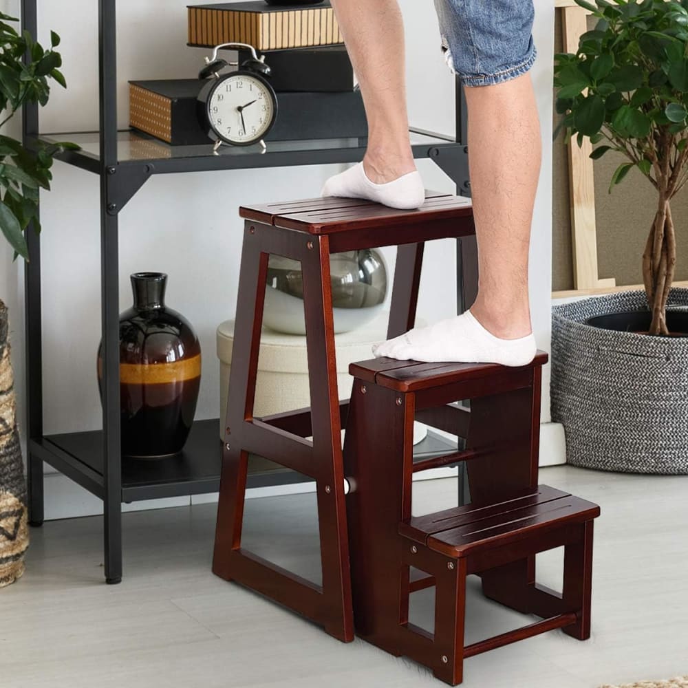 Hockerleiter aus Kiefernholz 57x38x65cm, Braun von Giantex