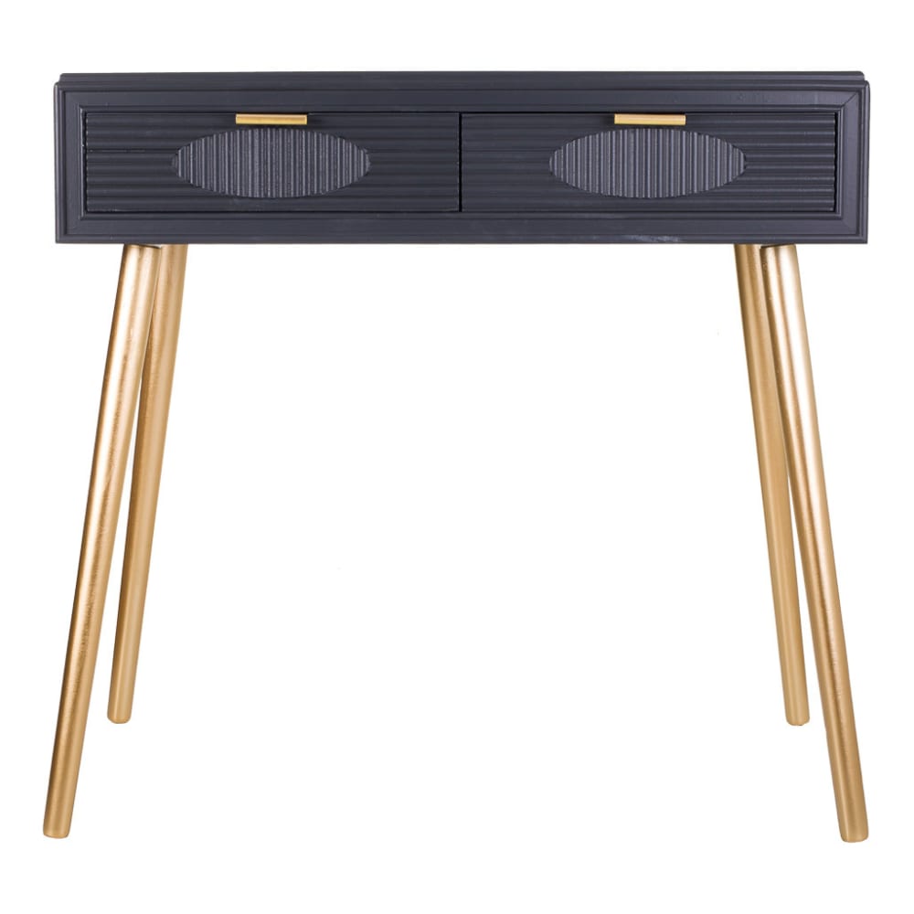 Anthrazitgraue und goldene MDF-Holz-Konsole mit 2 Schubladen, 82x41x78 cm