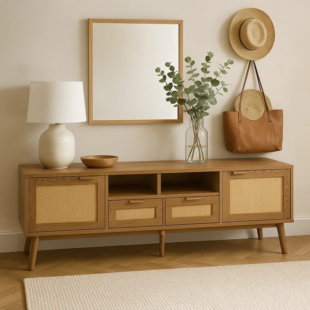Holzkonsole mit Rohrgeflecht Natürliche Eleganz und Charme von Urban Meuble
