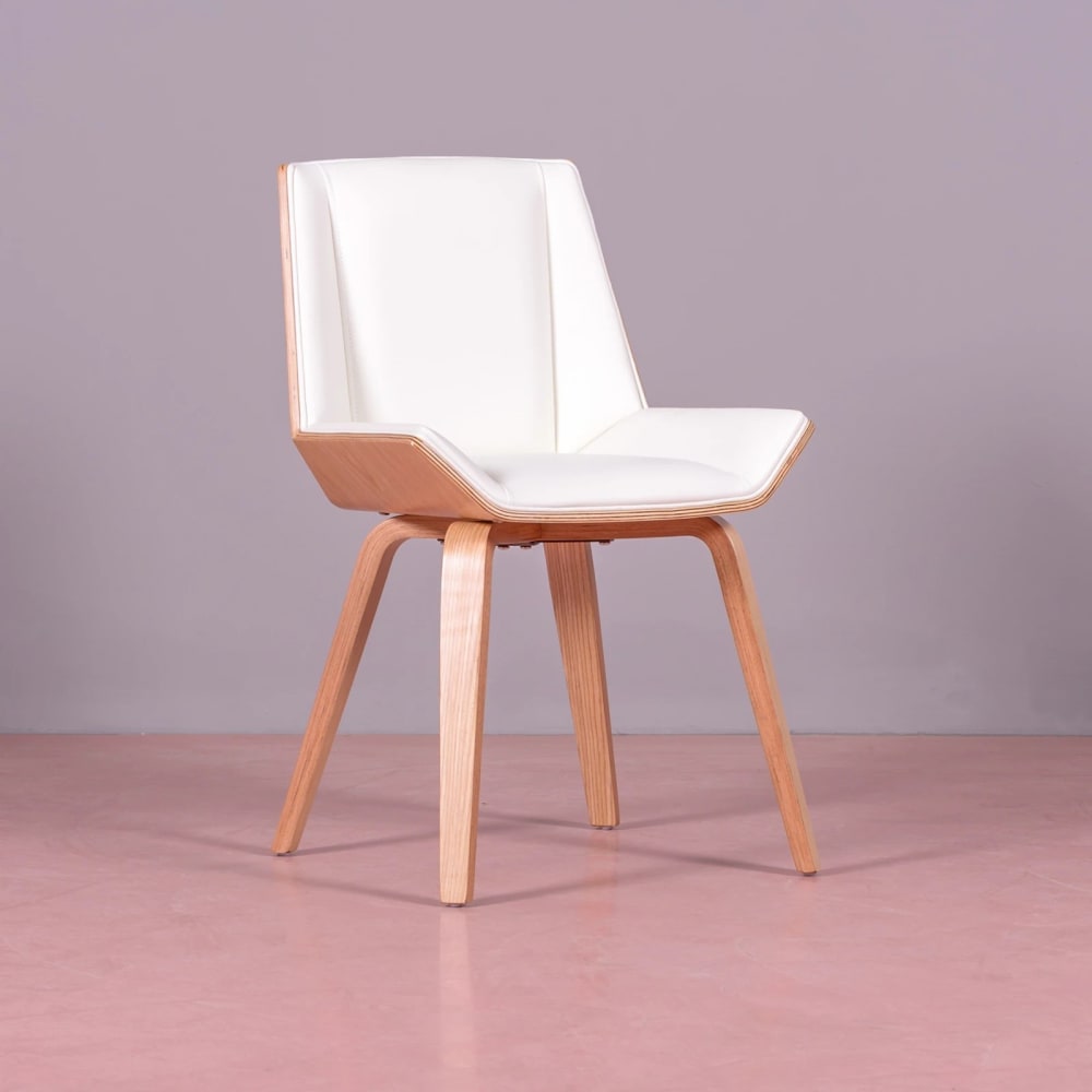 Holzstuhl aus hellem Ahorn mit Kunstlederkissen, weiß von Nest dream