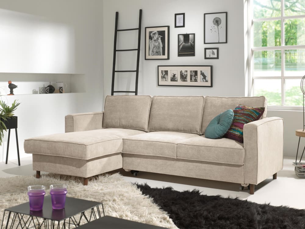 Jake – canapé d’angle gauche – convertible avec coffre – 4 places – en 222x84x148cm Samt Beige Lisa Design Sofas und Sessel Sofas Ecksofas