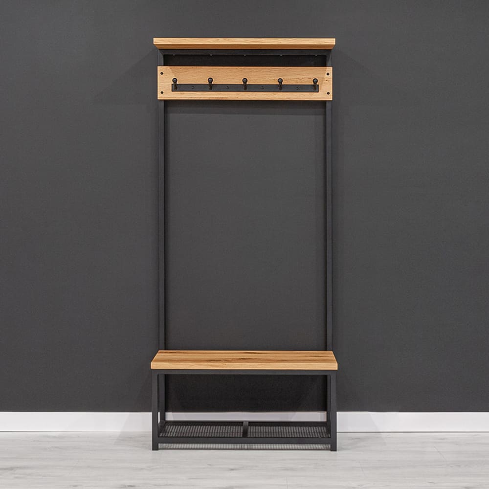 Der Garderobenständer fügt sich hervorragend in Innenräume ein, die im loftartigen, industriellen, modernen und minimalistischen Stil eingerichtet sind. Die Verwendung von Holzablagen und Metallelementen sorgt bei diesem Möbelstück für ein einzigartiges Flair. So wird der Innenraum geschmackvoll ergänzt und die maximale Funktionalität bleibt erhalten.