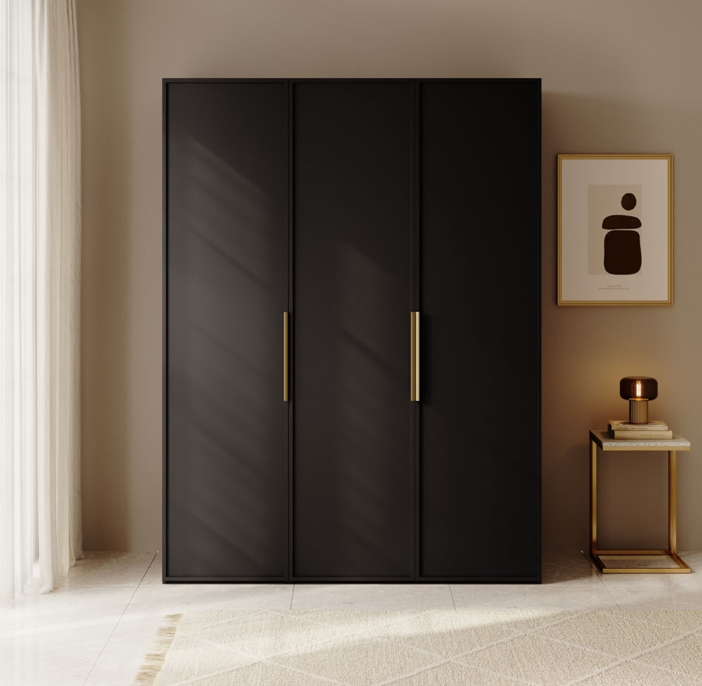 Kleiderschrank 3T mit 2 Stangen, 150 cm, schwarz von Selsey