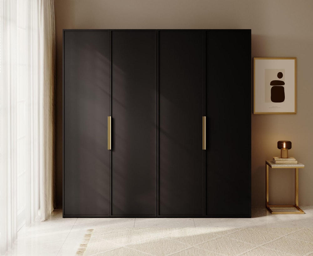 Kleiderschrank 4T mit 2 Stangen, 200 cm, schwarz von Selsey