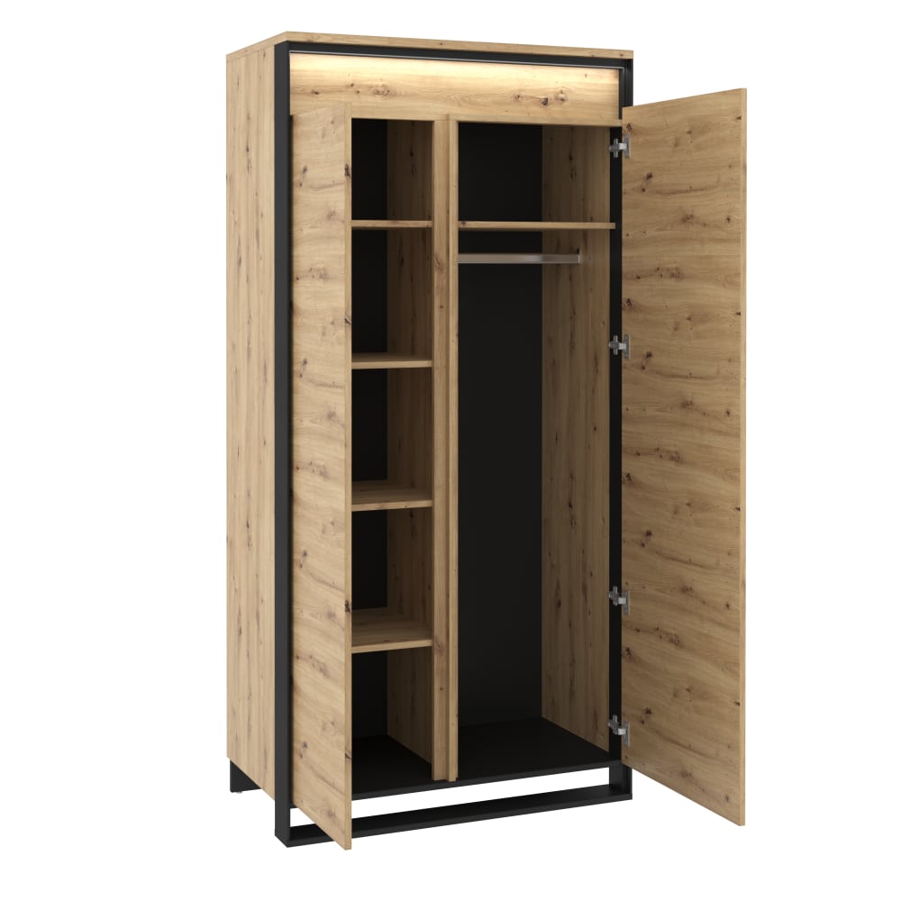 Kleiderschrank mit Beleuchtung aus Holz, 95x50x195cm, Eiche Artisan von Feldmann-Wohnen