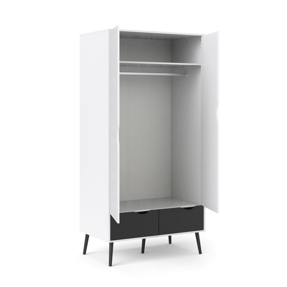 Der Kleiderschrank Napoli mit 2 Türen und 2 Schubladen in Weiß und Mattschwarz ist ein Kleiderschrank in der Farbe Weiß, der sowohl Stil als auch Funktionalität in Ihr Zuhause bringt. Der Kleiderschrank aus unserer Napoli-Serie in Weiß und Schwarz ist eine moderne Serie mit geschnitzten Fronten, runden Beinen und trendiger Materialkomposition. Der Kleiderschrank wird in Dänemark hergestellt und verfügt über 1 Kleiderstange und 1 Hutablage hinter den 2 Türen. Unten verfügt der Schrank über 2 geräumige Schubladen. Dieses Produkt wurde mit viel Liebe zum Detail hergestellt, was sowohl Ästhetik als auch hohe Haltbarkeit gewährleistet. Bei der Gestaltung wurde sowohl auf Funktionalität als auch auf Stil geachtet, was es zur perfekten Wahl für jeden Raum in Ihrem Zuhause macht. Die verwendeten Materialien sind von hoher Qualität, was dem Produkt eine lange Lebensdauer verleiht und dafür sorgt, dass es dem täglichen Gebrauch standhält. Ob zur Aufbewahrung oder als dekorative Ergänzung, dieses Produkt wertet Ihre Einrichtung auf und bringt zusätzlichen Komfort und Eleganz in Ihr Zuhause.