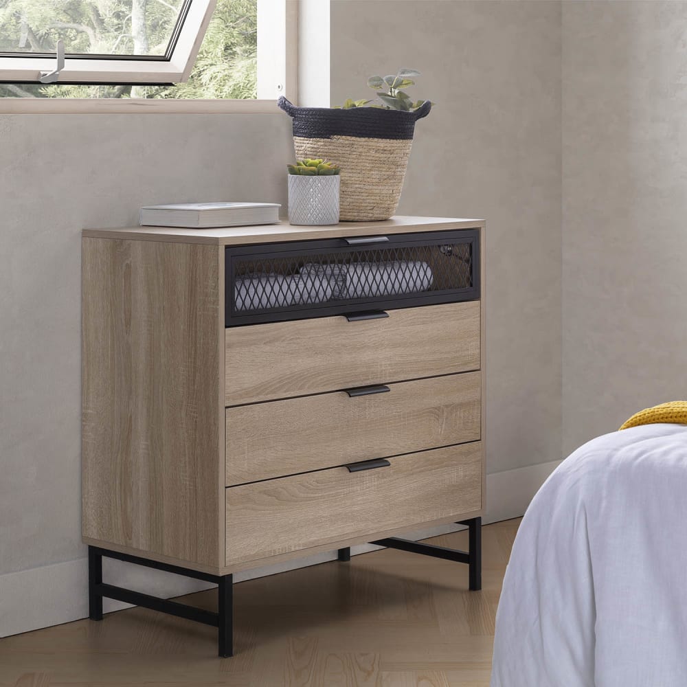 · Kombinieren Sie diese Kommode mit dekorativen Accessoires in neutralen Farbtönen oder fügen Sie mit mehr Vintage-Details ein zusätzliches bisschen Modernität hinzu, um der Schlafzimmerumgebung einen industrielleren Stil zu verleihen.
