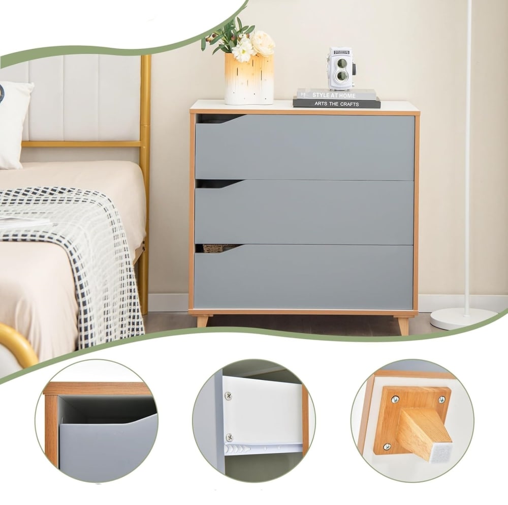 Kommode aus Holz 75 x 42 x 75 cm, Grau von Giantex