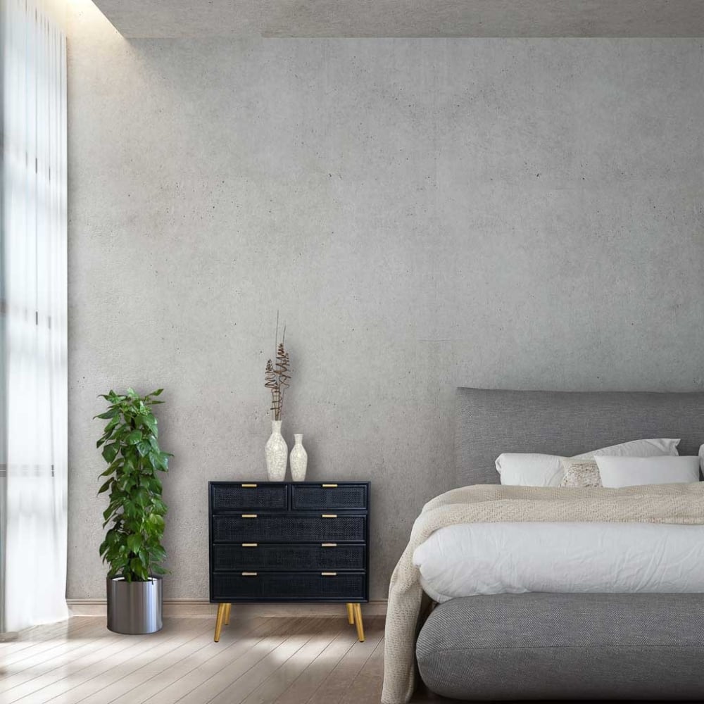 Schwarze MDF-Holz Kommode mit Gitter 80×39,5×81 cm Ein warmer, komfortabler und funktionaler Stil, der den Unterschied ausmacht, ist der rustikale Stil mit modernem Design und Ästhetik, kombiniert mit Details, die an die Vergangenheit erinnern, wie diese reizvolle Kommode mit Gitterfronten. Die Kommode besteht aus einer MDF-Holzstruktur und die Schubladenfronten sind aus Naturfasergewebe gefertigt. Ein elegantes Stück, das Sie zum Protagonisten Ihrer Schlafzimmerdekoration machen können. Sie verfügt über 5 Schubladen mit goldfarbenen Griffen. Seine Abmessungen: Länge: 80 cm. Höhe: 81 cm. Tiefe: 39,5 cm.