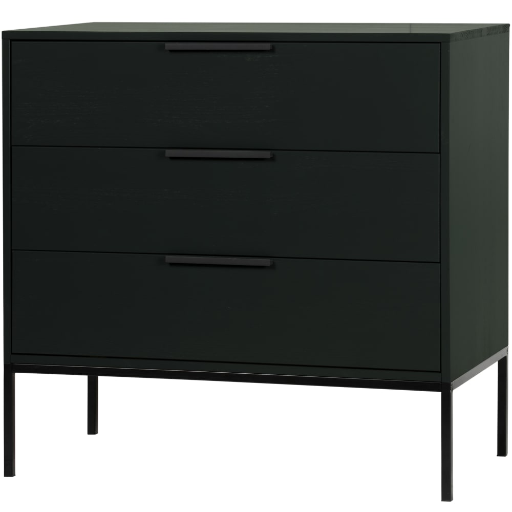Robuste Kommode, Drei geräumige Schubladen, Aus Kiefernholz mit gebürsteter Oberfläche, H 93 cm x B 94 cm x T 52 cm. Ein modernes und klares Design kennzeichnet diese Kommode. Diese Kommode stammt aus der Kollektion der niederländischen Einrichtungsmarke WOOOD. Mit nicht weniger als drei Schubladen bietet sie viel Stauraum. Die Kommode ist aus massivem, geschliffenem Kiefernholz gefertigt, was ihr ein robustes Aussehen verleiht. Der Sockel und die Griffe sind stilvoll mit einer mattschwarzen Pulverbeschichtung versehen. WARNUNG Kippgefahr! Bei Schränken, die höher als 50 cm sind, empfehlen wir, der Wandbefestigung besondere Aufmerksamkeit zu schenken. Die Fallschutzbefestigung verhindert Unfälle und bewahrt den Schrank vor dem Umkippen. Werkstoff Die Kiefernmöbel in unseren Kollektionen sind und werden auf verschiedene Weise behandelt. Geschliffenes Kiefernholz beispielsweise ist glatt und sauber verarbeitet, während gebürstetes Kiefernholz für seine charakteristischen Maserungsspuren und sein lebendiges Aussehen bekannt ist. Für ein noch robusteres Aussehen wird Kiefer bandgesägt. Kiefernholz zeichnet sich durch sichtbare Flammen- und Maserungsspuren aus. Abmessungen – Höhe: 93 cm, Breite: 94 cm, Tiefe: 52 cm, Fußhöhe: 24 cm, Höhe der Schublade: 22 cm, Breite der Schublade: 90 cm, Gewicht: 33 kg, Gewicht pro Schublade: 15 kg Pflege Die Kiefernmöbel unserer Kollektionen sind mit einem umweltfreundlichen Lack auf Wasserbasis behandelt, der die Lebensdauer des Produkts erheblich verlängert. Behandeltes Kiefernholz ist mit einem leicht feuchten Tuch leicht zu reinigen. Um Kreise und Flecken im Holz zu vermeiden, empfiehlt es sich, feuchte Flecken sofort zu trocknen. Lieferung Der Artikel wird in einem Paket mit einer Mindestbestellmenge von einem Stück geliefert. Der Artikel ist mit Hilfe der mitgelieferten Montageanleitung leicht zu montieren. Um harte Böden zu schützen, legen Sie Filzgleiter auf die Unterseite der Beine, um Schäden zu vermeiden. Es wird empfohlen, bei der Montage besonders vorsichtig zu sein,um Unfälle zu vermeiden. Der Artikel stammt ursprünglich von einem FSC-zertifizierten Hersteller.