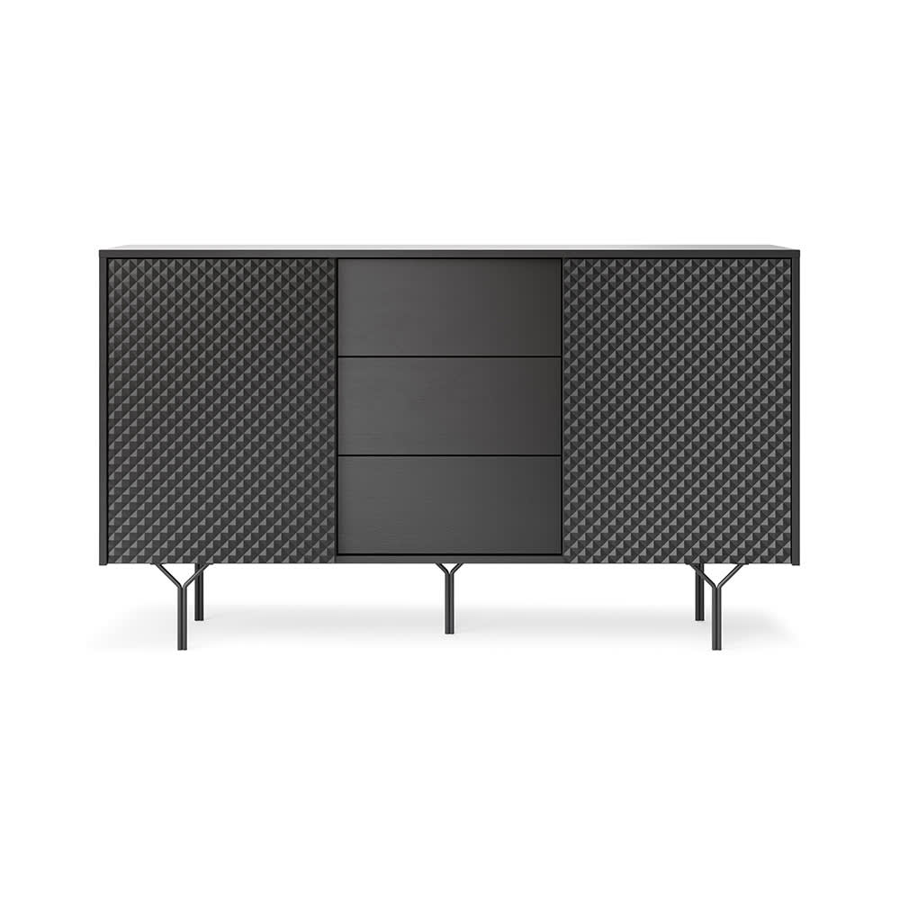 Kommode in fühlbarem 3D-Style aus Holz, 144x38x83cm, schwarz von Feldmann-Wohnen