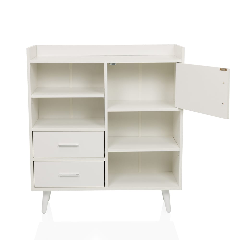 Modernes Highboard mit zwei Schubladenelementen, zwei offenen Fächern und einer Tür