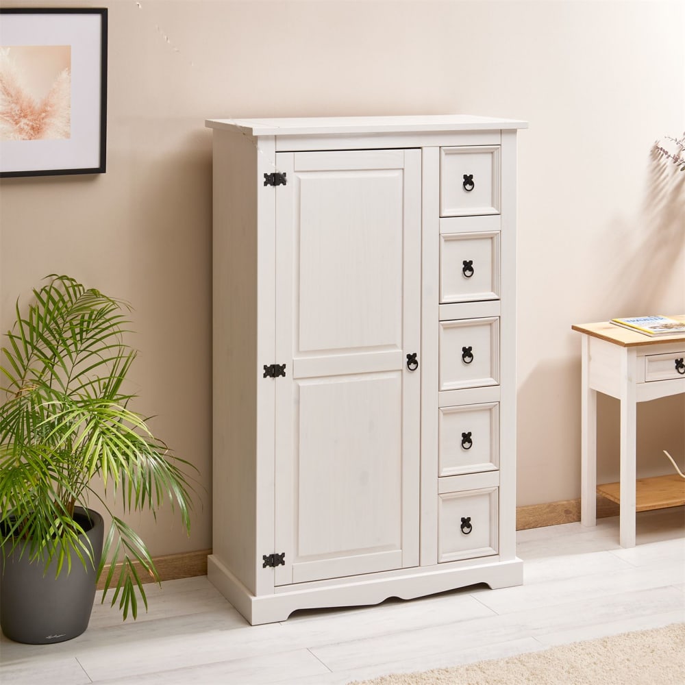 Kommode mit 1 Tür 5 Schubladen aus Kiefer, weiß von IDIMEX